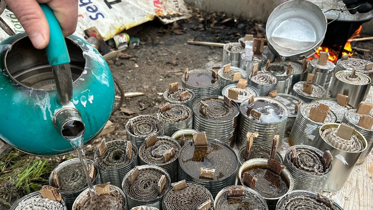 Jednou z věcí, která je potřeba na Ukrajině stále, jsou například zákopové svíčky. Ty Lakomý společně s dalšími dobrovolníky a Ukrajinci žijícími v Pacově pravidelně vyrábí z plechovek, kartonu a vosku. „Do plechovky například od zahuštěného mléka se smotá pruh kartonu a zalije se to voskem. Vojáci to pak na frontě mohou využívat jako zdroj tepla a světla,“ popsal.