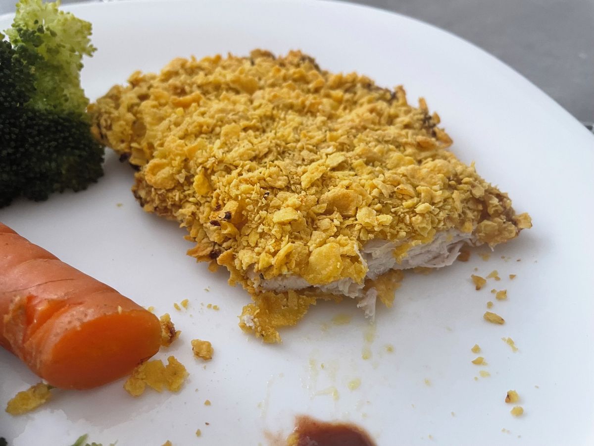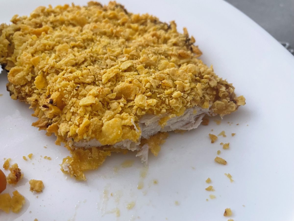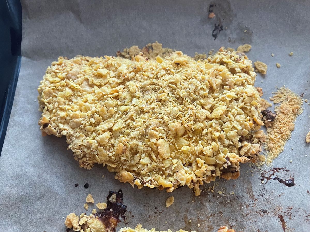 Neustálé přemýšlení o tom, co si člověk připraví na oběd, je často poměrně otravné. Mnohdy člověku tak nějak vytane na mysli klasický řízek. Čas od času rozhodně stojí za to. Připravit ho ale lze i jinak než klasicky. My jsme kuřecí řízek pekli v troubě. Navíc jsme nepotřebovali klasickou strouhanku, kterou nahradily kukuřičné lupínky. Recept byl tak v podstatě nechtěně bezlepkový. Výsledek rozhodně stál za to, o čemž se ostatně můžete sami přesvědčit na fotografiích.
