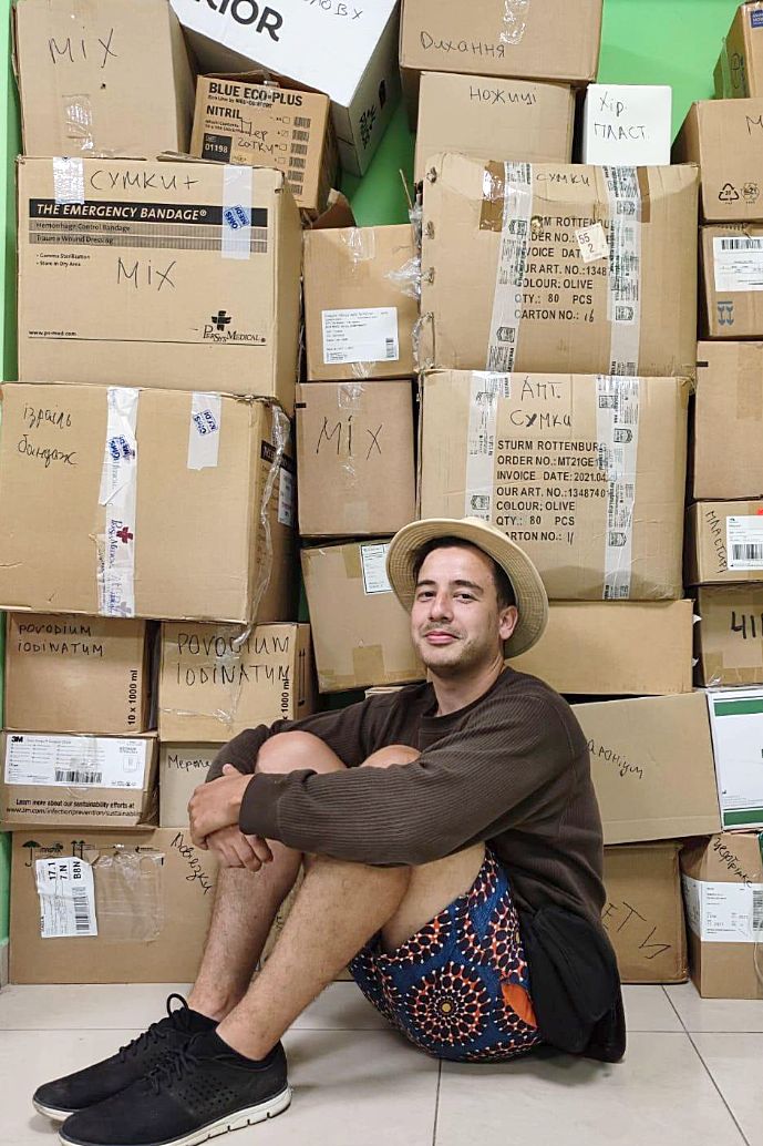 Kristian Škirjak během dobrovolnické práce ve skladu s léky