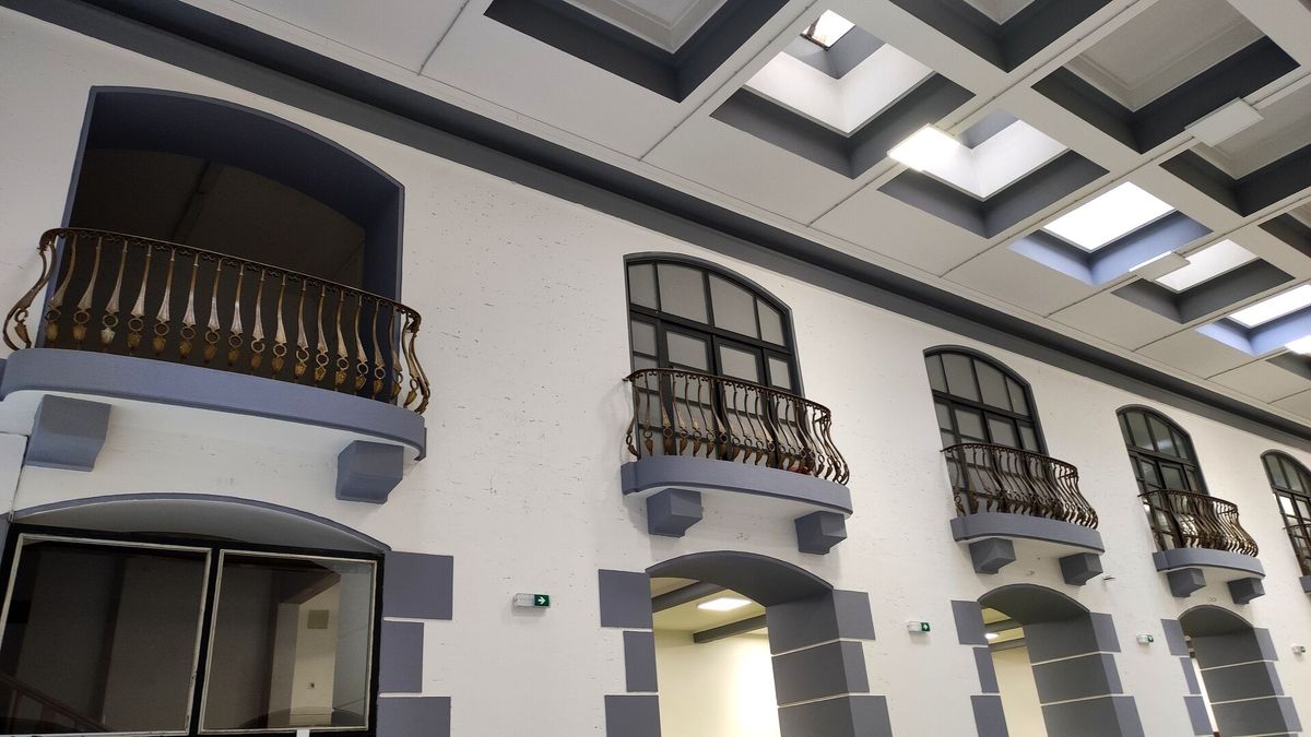 Z původního sálu zimní zahrady se zachovaly galerie se zábradlím.