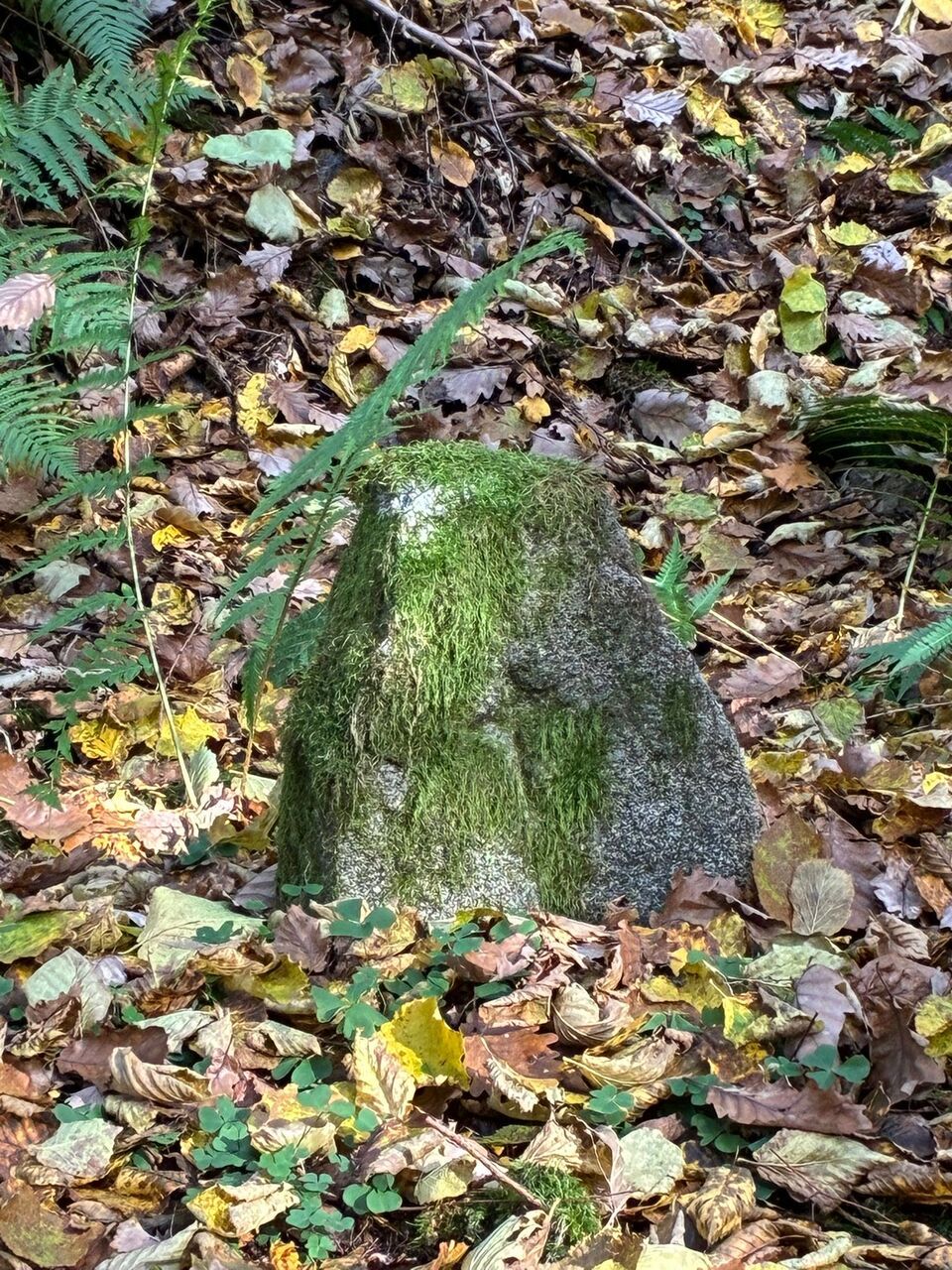 Pozornost přítomných upoutává navršená zemina s hrubě opracovaným, mechem porostlým kamenem a s vytesaným křížkem. Petr Netolický si není jist, zda nejde o mezní kámen. Z historických map ovšem nevyplývá, že by daným místem v posledních několika staletích procházela hranice pozemků.