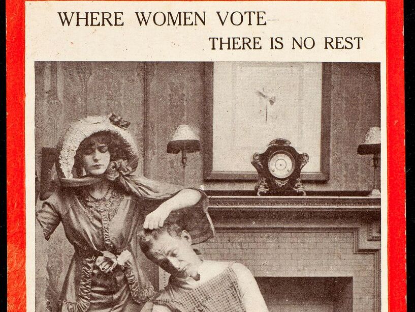 Pohlednice proti ženskému volebnímu právu z počátku 20. století