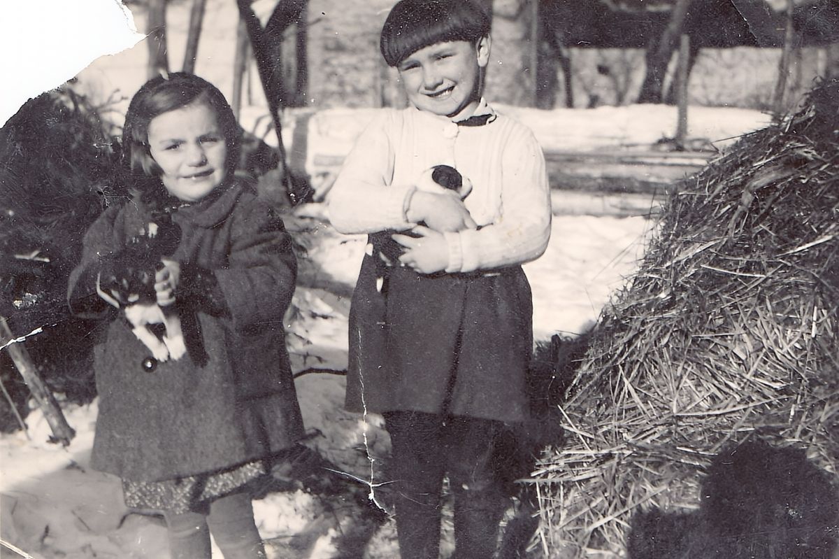 Eva Demelová (Rosenkrancová) se sestřenicí Zdenou na dvorku Michalcových v Noříně