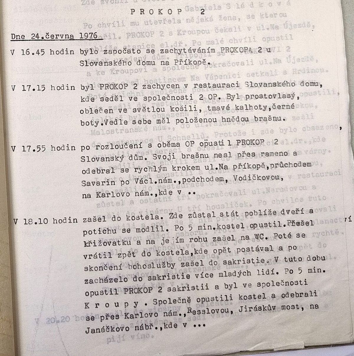 Ukázka ze záznamu starší sledovací akce PROKOP-2, jejímž cílem byl Zdeněk Kratochvíl.